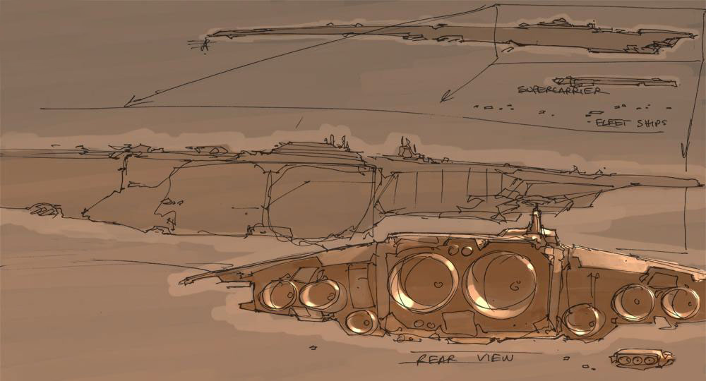 The only known drawing of Sajuuk's Wrath compared in size to a super carrier
